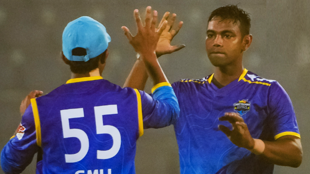 চট্টগ্রামের পক্ষে বল হাতে সবচেয়ে সফল ছিলেন তানভির ইসলাম; তিনি ৩৯ রানে ৩টি উইকেট নেন। এছাড়া শরীফুল ইসলাম, মেহেদী হাসান ও মুকিদুল ইসলাম প্রত্যেকেই শিকার করেন ২টি করে উইকেট। ৮০ রানের ইনিংস খেলে ম্যাচসেরা হন মির্জা বেগ।
