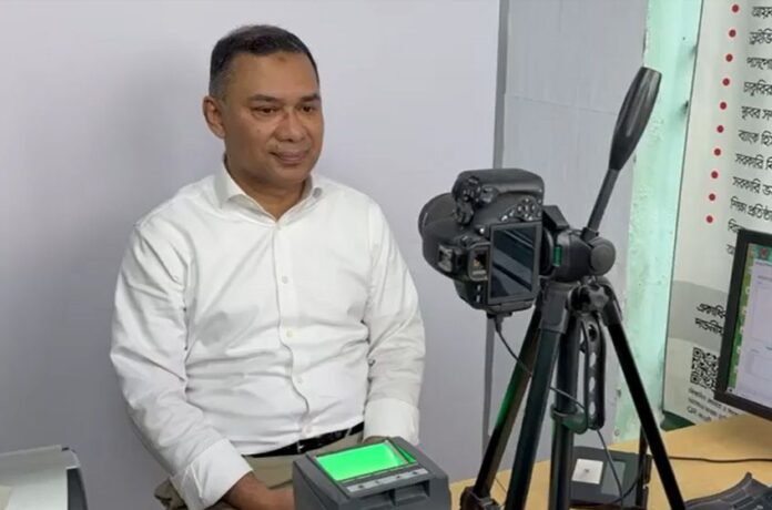 এনআইডির জন্য তারেক রহমান আগে অনলাইনে ভোটার ফরম পূরণ করেন এবং এরপর আগারগাঁও নির্বাচন অফিসে গিয়ে ছবি তোলা, ফিঙ্গার, আইরিশ ও বায়োমেট্রিক প্রক্রিয়া সম্পন্ন করেন। তিনি ঢাকা-১৭ আসনের গুলশান এলাকার ১৯ নম্বর ওয়ার্ডের ভোটার হিসেবে নিবন্ধনের জন্য আবেদন করেছেন।