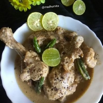 - কিছুক্ষন পর পর ঢাকা খুলে দেখতে হবে। ম্যারিনেট করা বাটি টাতে অল্প জল দিয়ে সেটা প্যানে চিকেন এর মধ্যে দেবো। ধনে পাতা কুচি ও কাঁচা লঙ্কা দিয়ে আরো কিছুক্ষন হতে দেবো। ভালো ভালো চিকেন সেদ্ধ হয়ে গেলে গ্যাস বন্ধ করে উপর থেকে অল্প লেবুর রস দিয়ে দেবো। স্লাইস করা লেবুর পিস, ধনেপাতা কুচি, কাঁচালঙ্কা দিয়ে সাজিয়ে পরিবেশন করবো লেমন পেপার চিকেন।