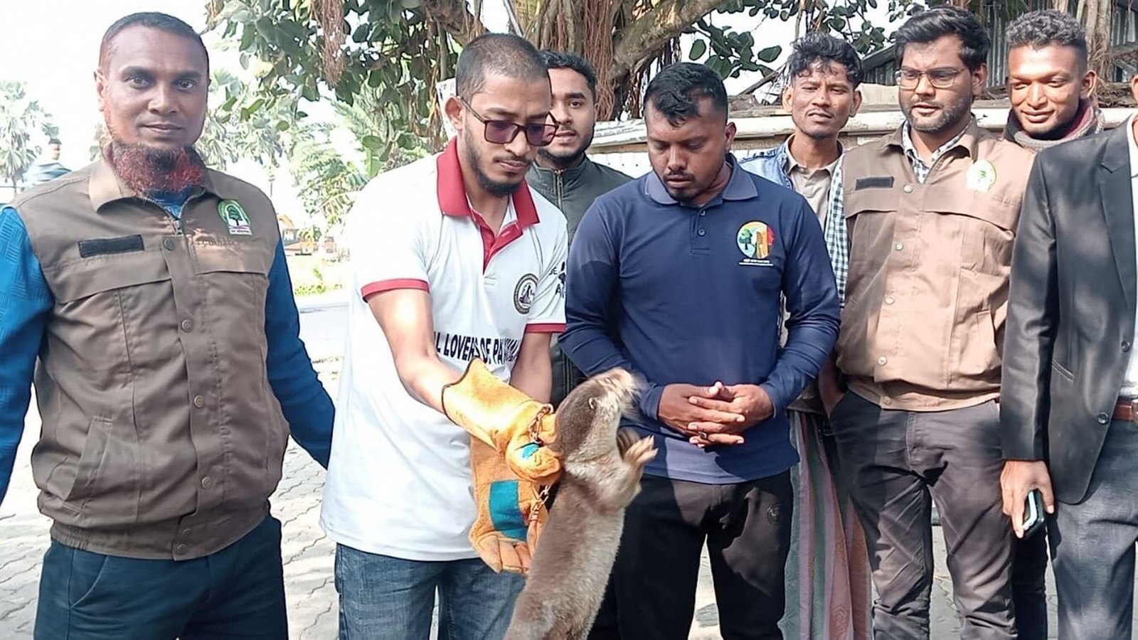 উদ্ধারকৃত প্রাণীটি স্থানীয়ভাবে ‘উদবিড়াল’ নামে পরিচিত, যা বাংলাদেশে বিপন্ন বন্যপ্রাণীর তালিকাভুক্ত।