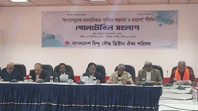 শনিবার রাজধানীর সিরডাপ মিলনায়তনে বাংলাদেশ হিন্দু বৌদ্ধ খ্রিস্টান ঐক্য পরিষদ আয়োজিত ‘সংখ্যালঘুদের মানবাধিকার: বর্তমান বাস্তবতা ও প্রত্যাশা’ শীর্ষক গোলটেবিল বৈঠকে এসব তথ্য তুলে ধরা হয়।