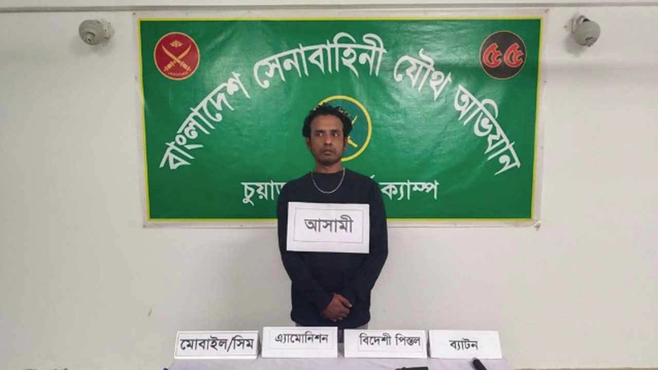 অভিযানের সময় তার হেফাজত থেকে একটি বিদেশি পিস্তল, দুই রাউন্ড গুলি, একটি স্মার্টফোন, ১১টি সিম কার্ড ও একটি ব্যাটন উদ্ধার করা হয়েছে।