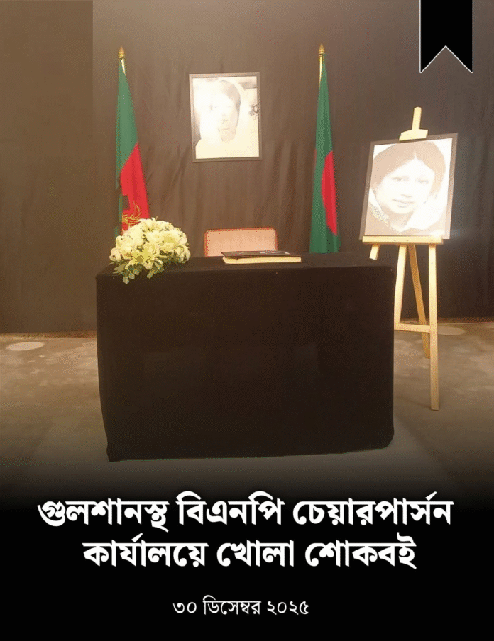 সাবেক প্রধানমন্ত্রী ও বাংলাদেশ জাতীয়তাবাদী দলের (বিএনপি) চেয়ারপারসন বেগম খালেদা জিয়ার প্রতি গভীর শোক ও সমবেদনা জানাতে শোকবই খোলা হয়েছে। বিএনপির পক্ষ থেকে রাজধানীর গুলশানে দলের চেয়ারপারসনের রাজনৈতিক কার্যালয়ে এই শোকবই খোলা হয়।