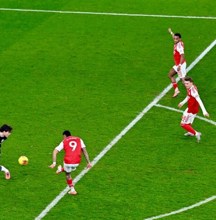 ম্যাচের প্রথমার্ধ ছিল বেশ প্রতিদ্বন্দ্বিতাপূর্ণ। ভিলার রক্ষণভাগ প্রথমার্ধে আর্সেনালকে আটকে রাখতে সক্ষম হলেও বিরতির পরই খেলা পুরো বদলে যায়। বিরতি থেকে ফেরার মাত্র ৩ মিনিটের মাথায় কর্নার থেকে দুর্দান্ত এক হেডে ডেডলক ভাঙেন ইনজুরি কাটিয়ে ফেরা ব্রাজিলিয়ান ডিফেন্ডার গ্যাব্রিয়েল মাঘালহায়েস। গোল হজম করে ভিলা গুছিয়ে ওঠার আগেই ব্যবধান দ্বিগুণ করেন স্প্যানিশ মিডফিল্ডার মার্টিন জুবিমেন্দি। অধিনায়ক মার্টিন ওডেগার্ডের চমৎকার পাস থেকে গোলটি করেন তিনি।