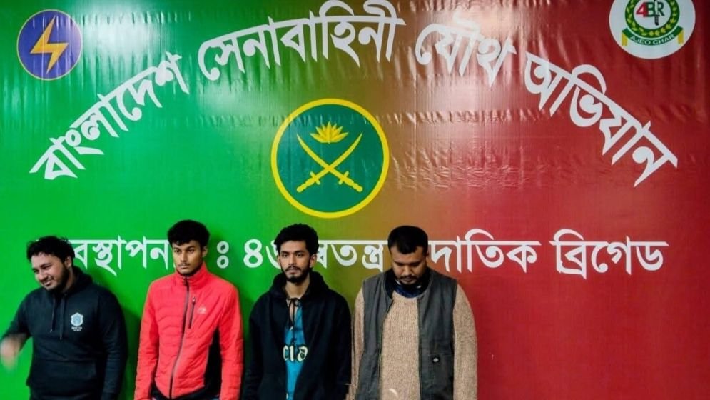 রাজধানীর লালবাগ থানাধীন আজিমপুর ইডেন মহিলা কলেজের ১ নম্বর গেটের সামনে চাঁদাবাজির অভিযোগে ঢাকা কলেজের চার শিক্ষার্থীকে আটক করেছে সেনাবাহিনী।