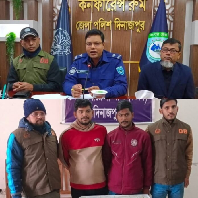 এ বিষয়ে ৬ জানুয়ারি -২০২৬ মঙ্গলবার বেলা পৌণে ১২টায় দিনাজপুর জেলা পুলিশ সুপার কার্যালয়ের সম্মেলন কক্ষে এক প্রেস ব্রিফিংয়ে এ তথ্য জানান অতিরিক্ত পুলিশ সুপার (ক্রাইম এন্ড অপস) আনোয়ার হোসেন।