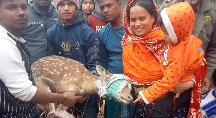 স্থানীয়দের ভাষ্য অনুযায়ী, খবর পাওয়ার পর গ্রামবাসীর সহযোগিতায় বন বিভাগ দ্রুত ঘটনাস্থলে পৌঁছে হরিণটিকে উদ্ধার করে নিরাপদ স্থানে নিয়ে যায়।