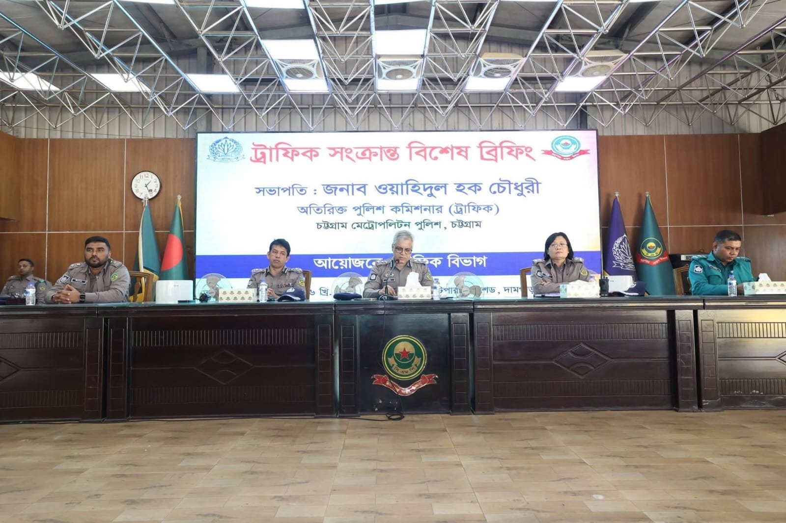 উক্ত ব্রিফিং সভায় সভাপতিত্ব করেন চট্টগ্রাম মেট্রোপলিটন পুলিশের অতিরিক্ত পুলিশ কমিশনার (ট্রাফিক) ওয়াহিদুল হক চৌধুরী। সভায় নগরীর সার্বিক ট্রাফিক ব্যবস্থাপনা, যানজট নিরসন, সড়কে শৃঙ্খলা বজায় রাখা, ট্রাফিক আইন কার্যকরভাবে বাস্তবায়ন এবং জনসাধারণের নিরাপদ চলাচল নিশ্চিতকরণ বিষয়ে বিস্তারিত আলোচনা করা হয়।