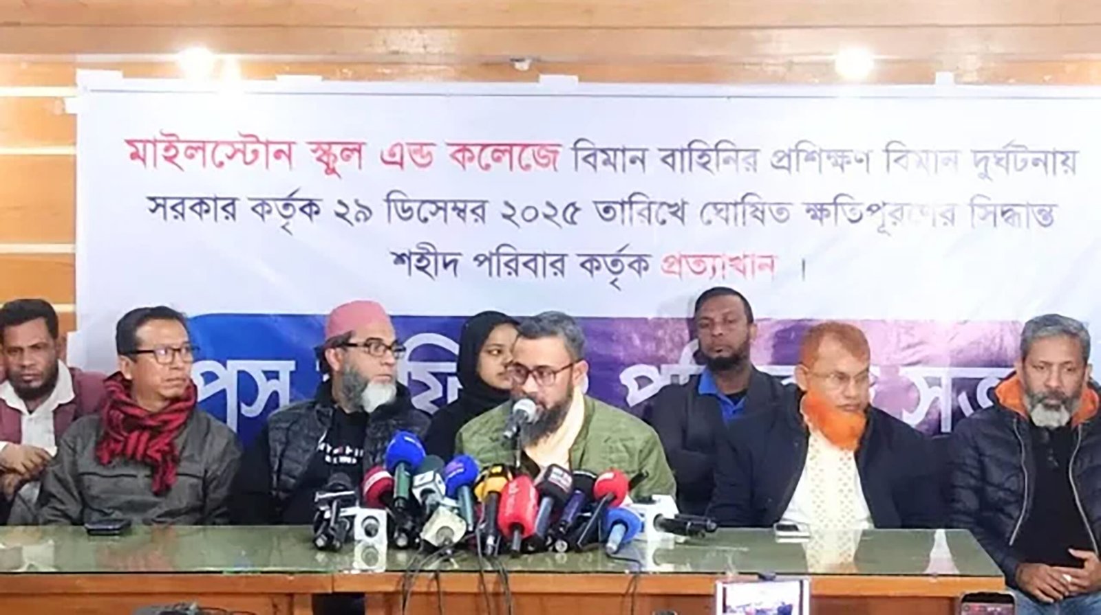 আজ ঢাকা রিপোর্টার্স ইউনিটিতে আয়োজিত সংবাদ সম্মেলনে রাজধানীর উত্তরার মাইলস্টোন স্কুল অ্যান্ড কলেজে ২০২৫ সালের ২১ জুলাইয়ে ঘটা বিমান দুর্ঘটনায় ক্ষতিগ্রস্ত পরিবারগুলো ৫ দফা দাবি পেশ করেছে।