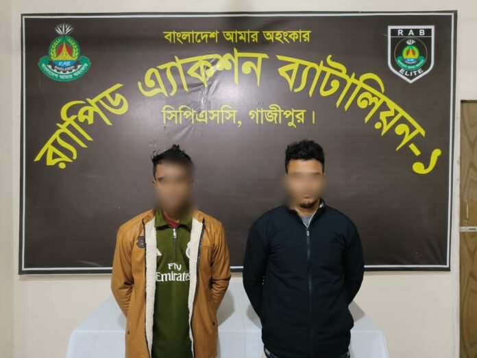 এরই ধারাবাহিকতায় মঙ্গলবার ০৬ জানুয়ারি ২০২৬ তারিখ গাজীপুর জেলার জয়দেবপুর থানাধীন নয়াপাড়া এলাকায় বিশেষ অভিযান পরিচালনা করে ব্রাহ্মণবাড়ীয়া জেলার নাসিরনগর উপজেলায় ফেরিওয়ালা শাহিন মিয়া (২২)’কে পিটিয়ে হত্যার চাঞ্চল্যকর ঘটনা। এজাহারভূক্ত ২নং ও ৩নং আসামি মোহাম্মদ জুনায়েদ (২৫), পিতাঃ আব্দুল কাদির, সাং-ফেদিয়ার কান্দি, উপজেলা নাসির নগর, জেলাঃ ব্রাহ্মণবাড়িয়া ও রোমান মিয়া (২৮), পিতাঃ আসমত আলী, সাং-ফেদিয়ার কান্দি, উপজেলা নাসির নগর, জেলাঃ ব্রাহ্মণবাড়িয়া’দ্বয়কে র্যাব-১ এর সহায়তায় গ্রেফতার করতে সক্ষম হয় র্যাপিড এ্যাকশন ব্যাটালিয়ন-৩। প্রাথমিক জিজ্ঞাসাবাদ ও মামলার এজাহার সূত্রে জানা যায় যে, ভিকটিম শাহিন মিয়া (২২), পিতাঃ আক্তার মিয়া, সাং-ফেদিয়ারকান্দি, উপজেলা নাসিরনগর, জেলাঃ ব্রাহ্মণবাড়ীয়া পেশায় একজন ফেরিওয়ালা। ঘটনার ০৩ দিন পূর্বে একই গ্রামের আরাফাত মিয়ার ভাতিজা মিলন মিয়ার মেয়ের একটি রুপার চেইন হারিয়ে যায়। এ নিয়ে তারা ভিকটিম শাহিনকে চোর হিসেবে সন্দেহ করে আসছিল।