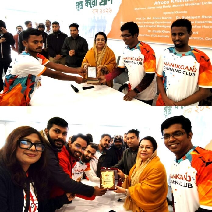 স্বাস্থ্যবান সমাজ গঠনের লক্ষ্যে মানিকগঞ্জে অনুষ্ঠিত হয়েছে ব্যতিক্রমধর্মী ম্যারাথন ইভেন্ট ‘মুক্ত কর প্রাণ’। শুক্রবার (৯ জানুয়ারি) মানিকগঞ্জ রানিং ক্লাবের আয়োজনে এ ম্যারাথনে দৌড়ের মাধ্যমে শারীরিক সুস্থতা, ইতিবাচক মানসিকতা এবং জীবনরক্ষার সচেতনতার বার্তা ছড়িয়ে দেওয়া হয়।