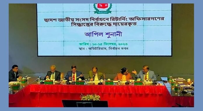 ত্রয়োদশ জাতীয় সংসদ নির্বাচনে রিটার্নিং কর্মকর্তাদের দেওয়া সিদ্ধান্তের বিরুদ্ধে দায়েরকৃত আপিল আবেদনের শুনানি আজ শনিবার থেকে শুরু হয়েছে। রাজধানীর আগারগাঁওয়ে নির্বাচন ভবনের অডিটোরিয়ামে (বেজমেন্ট-২) সকাল ১০টায় এই শুনানি প্রক্রিয়া শুরু হয়। প্রধান নির্বাচন কমিশনারসহ ফুল কমিশন এই শুনানি গ্রহণ করছেন।