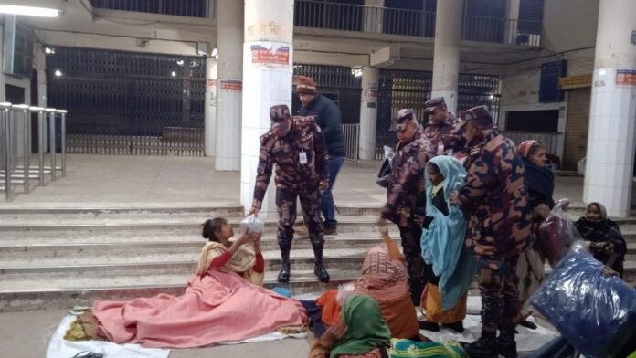 এরই ধারাবাহিকতায় চলমান তীব্র শীতে মানবিক সহায়তার অংশ হিসেবে দিনাজপুর ব্যাটালিয়ন (৪২ বিজিবি) কর্তৃক দিনাজপুর (বিরল ও বোচাগঞ্জ উপজেলা) এবং ঠাকুরগাঁও (পীরগঞ্জ, রাণীশংকৈল ও হরিপুর উপজেলা) জেলার সীমান্তবর্তী এলাকা এবং দিনাজপুর জেলা শহরে বসবাসরত শীতার্ত ও অসহায় জনগোষ্ঠীর মাঝে শীতবস্ত্র বিতরণ করা হয়েছে। গত ০৯ জানুয়ারি ২০২৬ তারিখে পরিচালিত এ কার্যক্রমে সর্বমোট দুই শতাধিক শীতার্ত মানুষের মাঝে কম্বল ও শীতবস্ত্র বিতরণ করা হয়।