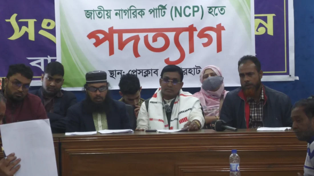 বাগেরহাটে জাতীয় নাগরিক পার্টির (এনসিপি) ১২ জন নেতাকর্মী একযোগে পদত্যাগের ঘোষণা দিয়েছেন। রোববার (১১ জানুয়ারি) দুপুরে বাগেরহাট প্রেসক্লাবে আয়োজিত এক সংবাদ সম্মেলনে তাঁরা আনুষ্ঠানিকভাবে দল ছাড়ার সিদ্ধান্ত জানান।