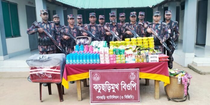 খাগড়াছড়ির কচুছড়ি মুখ সীমান্ত এলাকায় ভোররাতে পরিচালিত বিশেষ অভিযানে বিপুল পরিমাণ ভারতীয় অবৈধ পণ্য জব্দ করেছে সীমান্তরক্ষী বাহিনী। গোপন সংবাদের ভিত্তিতে চালানো এই অভিযানের মাধ্যমে সম্ভাব্য একটি চোরাচালান প্রচেষ্টা সম্পূর্ণভাবে ব্যর্থ করে দেওয়া হয়েছে।