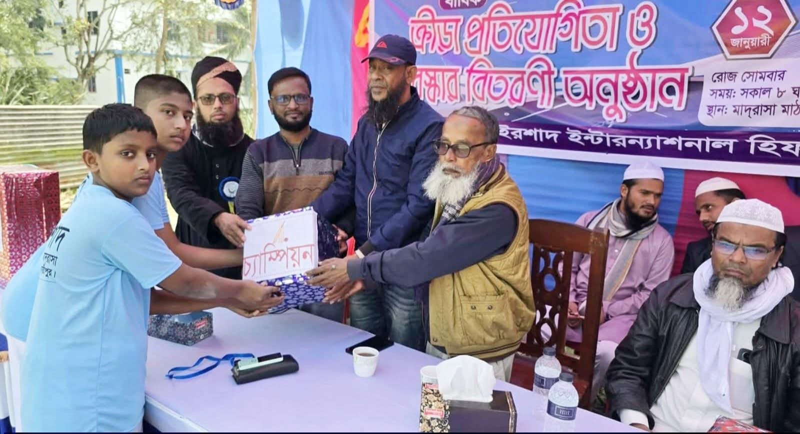 মাদারীপুরের কালকিনি উপজেলার পৌর এলাকার ঝাউতলা গ্রামের আল-ইরশাদ ইন্টারন্যাশনাল হিফজ মাদ্রাসায় বার্ষিক ক্রীড়া প্রতিযোগিতা ও বিজয়ীদের মাঝে পুরস্কার বিতরণী অনুষ্ঠান অনুষ্ঠিত হয়েছে।