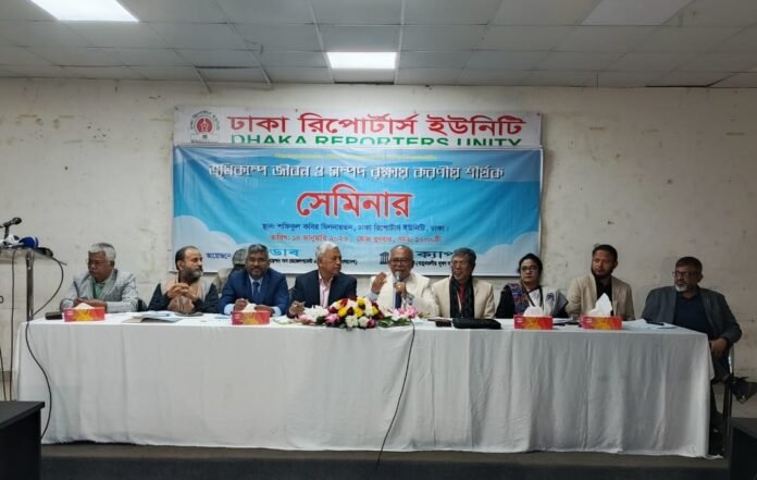 বুধবার রাজধানীর ঢাকা রিপোর্টার্স ইউনিটির শফিকুল কবির মিলনায়তনে ‘ভূমিকম্পে জীবন ও সম্পদ রক্ষায় করণীয়’ শীর্ষক এক সেমিনারে এ বিষয়টি উঠে আসে। এসোসিয়েশন অব ডেভেলপমেন্ট এজেন্সিজ ইন বাংলাদেশ(এডাব) এবং বায়ুমন্ডলীয় দূষণ অধ্যয়ন কেন্দ্র (ক্যাপস)-এর যৌথ উদ্যোগে এই সেমিনারের আয়োজন করা হয়।