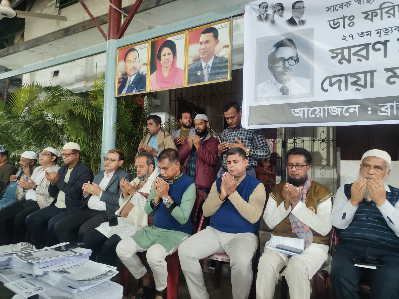 সাবেক স্বাস্থ্য প্রতিমন্ত্রী, বিএনপির কেন্দ্রীয় কমিটির নেতা বীর মুক্তিযোদ্ধা ডাঃ ফরিদুল হুদার ২৭তম মৃত্যুবার্ষিকী উপলক্ষে ব্রাহ্মণবাড়িয়া জেলা বিএনপির আয়োজনে স্মরণসভা ও দোয়া মাহফিল কেন্দ্রীয় বিএনপির অর্থনীতি বিষয়ক সম্পাদক ও জেলা বিএনপির সভাপতি ইনজিনিয়ার খালেদ হোসেন মাহবুব শ্যামলের সভাপতিত্বে বুধবার অনুষ্ঠিত হয়েছে।