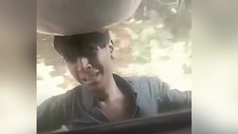 ভিডিওতে দেখা যায়, শরিফ নামে ওই কিশোর হকার কোমল পানীয় ভর্তি একটি গামলা মাথায় নিয়ে চলন্ত ট্রেনের দরজার বাইরের হ্যান্ডেল ধরে কোনোমতে ঝুলে আছে। এসময় ভেতর থেকে রেলওয়ের কর্মীদের বলতে শোনা যায়, ‘মালামাল ফেলে দে, না হলে ভেতরে আসতে পারবি না।’