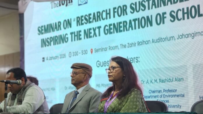 সেমিনারের মূল প্রবন্ধ উপস্থাপন করেন জাহাঙ্গীরনগর বিশ্ববিদ্যালয়ের নগর ও অঞ্চল পরিকল্পনা বিভাগের সহযোগী অধ্যাপক ড. আফসানা হক। তিনি গবেষণাকে একটি পরিবর্তনমুখী শেখার প্রক্রিয়া হিসেবে বর্ণনা করেন, যা টেকসই উন্নয়ন, নীতিনির্ধারণ এবং সামাজিক অগ্রগতিতে কার্যকর ভূমিকা রাখতে পারে।