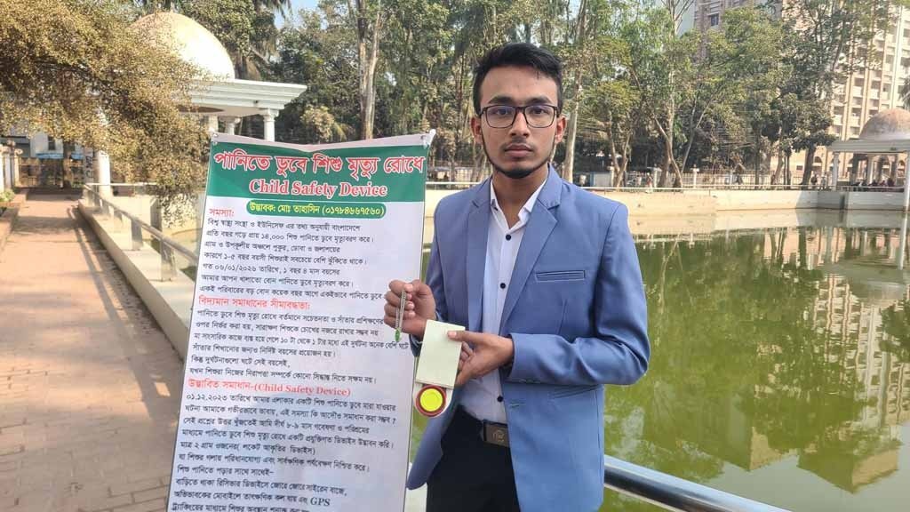 পানিতে পড়ে শিশু মৃত্যুর ঘটনা রোধে এক নতুন প্রযুক্তিগত সমাধান নিয়ে এগিয়ে এসেছেন ভোলার তরুণ উদ্ভাবক মো. তাহসিন। শিশুর গলায় ঝুলিয়ে রাখা যাবে এমন লকেট আকৃতির একটি ডিভাইস তিনি তৈরি করেছেন, যা পানির সংস্পর্শে এলেই তাৎক্ষণিকভাবে সতর্ক সংকেত পাঠাবে।