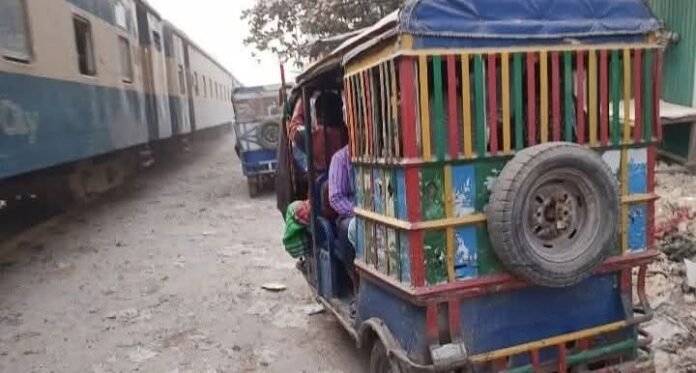অসম প্রতিযোগিতা: ট্রেনের সাথে পাল্লা দিয়ে অটোরিকশা চালানো।