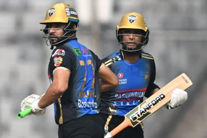 ইনিংসের শুরুতেই ধাক্কা খায় রংপুর। খালেদ আহমেদের শিকার হন তাওহিদ হৃদয় (৪) এবং ডেভিড মালানও সমান রানেই আউট হন। ওয়ানডাউনে নেমে অধিনায়ক লিটন দাসও রান তুলতে ব্যর্থ হন। চার উইকেট হারানোর পর খুশদিল শাহ ও মাহমুদউল্লাহ কিছুটা চেষ্টা করেন স্কোরকে সামলানোর।