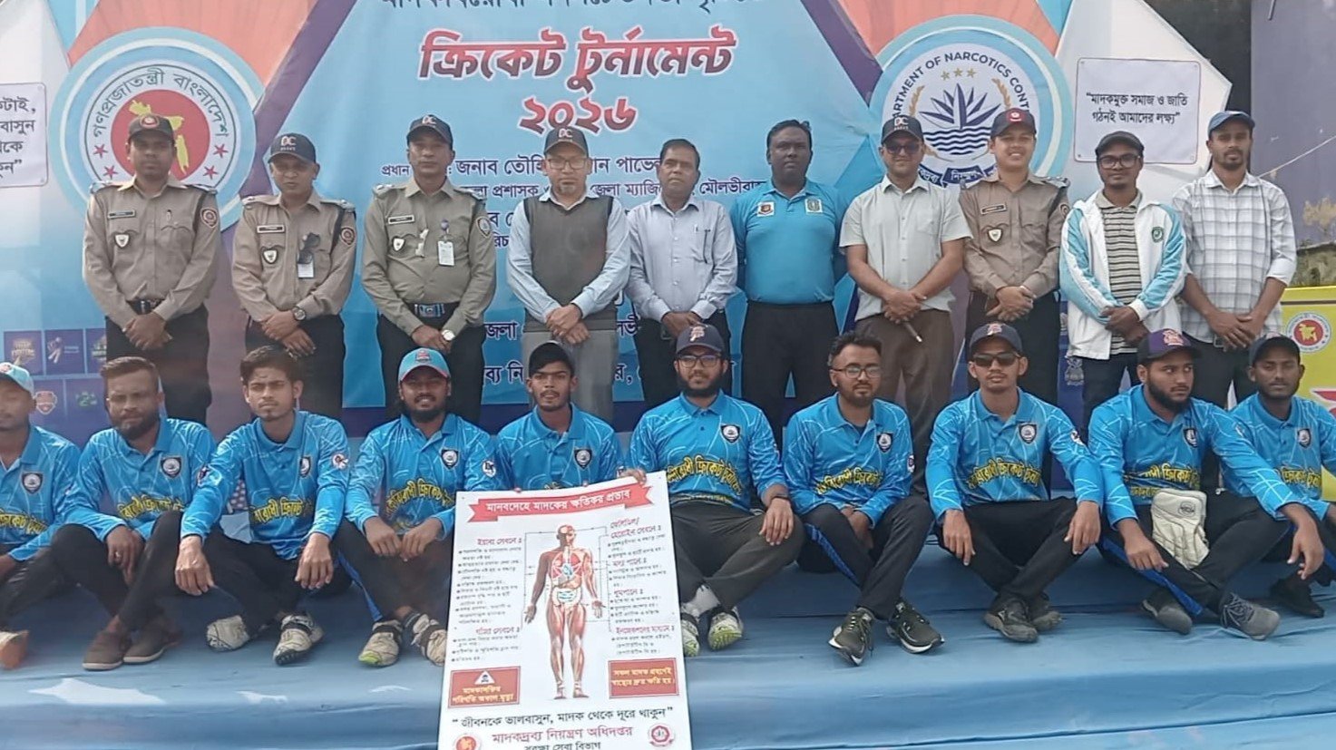 মাদকবিরোধী গণসচেতনতা সৃষ্টির লক্ষ্যে মৌলভীবাজারে ক্রিকেট টুর্নামেন্ট অনুষ্ঠিত হয়েছে। মৌলভীবাজার জেলা প্রশাসন ও জেলা মাদকদ্রব্য নিয়ন্ত্রণ অধিদপ্তরের উদ্যোগে সোমবার (২০ জানুয়ারি) দুপুরে মৌলভীবাজার কলেজ স্টেডিয়াম মাঠে ক্রিকেট টুর্নামেন্ট–২০২৬ অনুষ্ঠিত হয়।