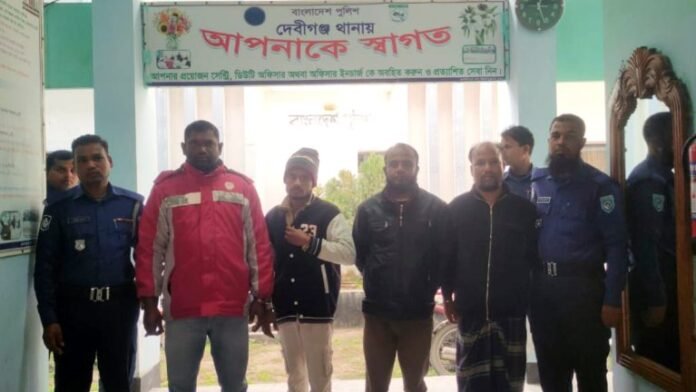 মামলার পর যৌথবাহিনী অভিযান চালিয়ে তিনজনকে গ্রেপ্তার করে। গ্রেপ্তারকৃতরা হলেন— দেবীগঞ্জ উপজেলার দন্ডপাল ইউনিয়নের শিমুলতলী–হাকিমপুর এলাকার মৃত আব্দুল হকের ছেলে আমিনুল হক (৪৮), একই এলাকার ময়নউদ্দীনের ছেলে মোসলেমউদ্দিন (৩৮) এবং মৌমারি–হাকিমপুর এলাকার সোলেমান শেখের ছেলে মোঃ শাহিনুর ইসলাম (৩৮)।