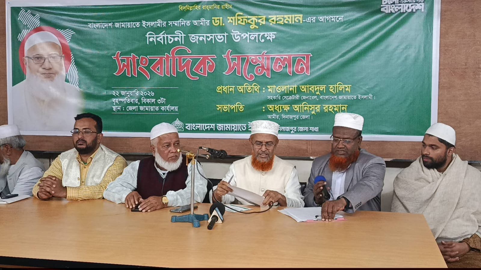 ২২ জানুয়ারি-২০২৬ বৃহস্পতিবার বিকেলে দিনাজপুর শহরের পাহাড়পুর এলাকায় অবস্থিত জেলা জামায়াত কার্যালয়ে এ সংবাদ সম্মেলনের আয়োজন করা হয়।