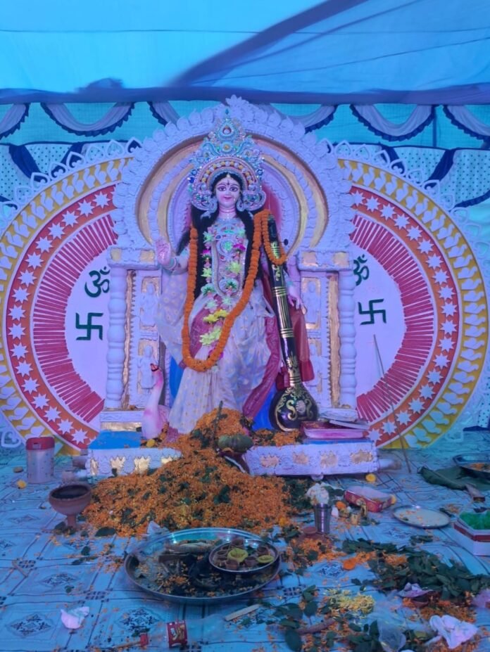 সকালে প্রতিমা প্রতিষ্ঠার মাধ্যমে পূজার আনুষ্ঠানিকতা শুরু হয়। এরপর বাণী অর্চনা, হাতে খড়ি, পুষ্পাঞ্জলি ও প্রসাদ বিতরণের মধ্য দিয়ে দিনব্যাপী পূজার কার্যক্রম সম্পন্ন হয়। পূজা উপলক্ষে কেন্দ্রীয় মন্দির প্রাঙ্গণে ভক্তিময় পরিবেশের সৃষ্টি হয়।