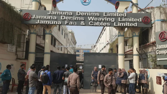 গাজীপুরের কোনাবাড়ী মেট্রো থানা এলাকায় যমুনা ডেনিম লিমিটেড নামে একটি পোশাক কারখানার শ্রমিকদের সঙ্গে পুলিশের ধাওয়া-পাল্টা ধাওয়ার ঘটনা ঘটেছে। আজ শনিবার সকালের এই ঘটনায় পুলিশসহ কমপক্ষে ১০ জন আহত হয়েছেন।