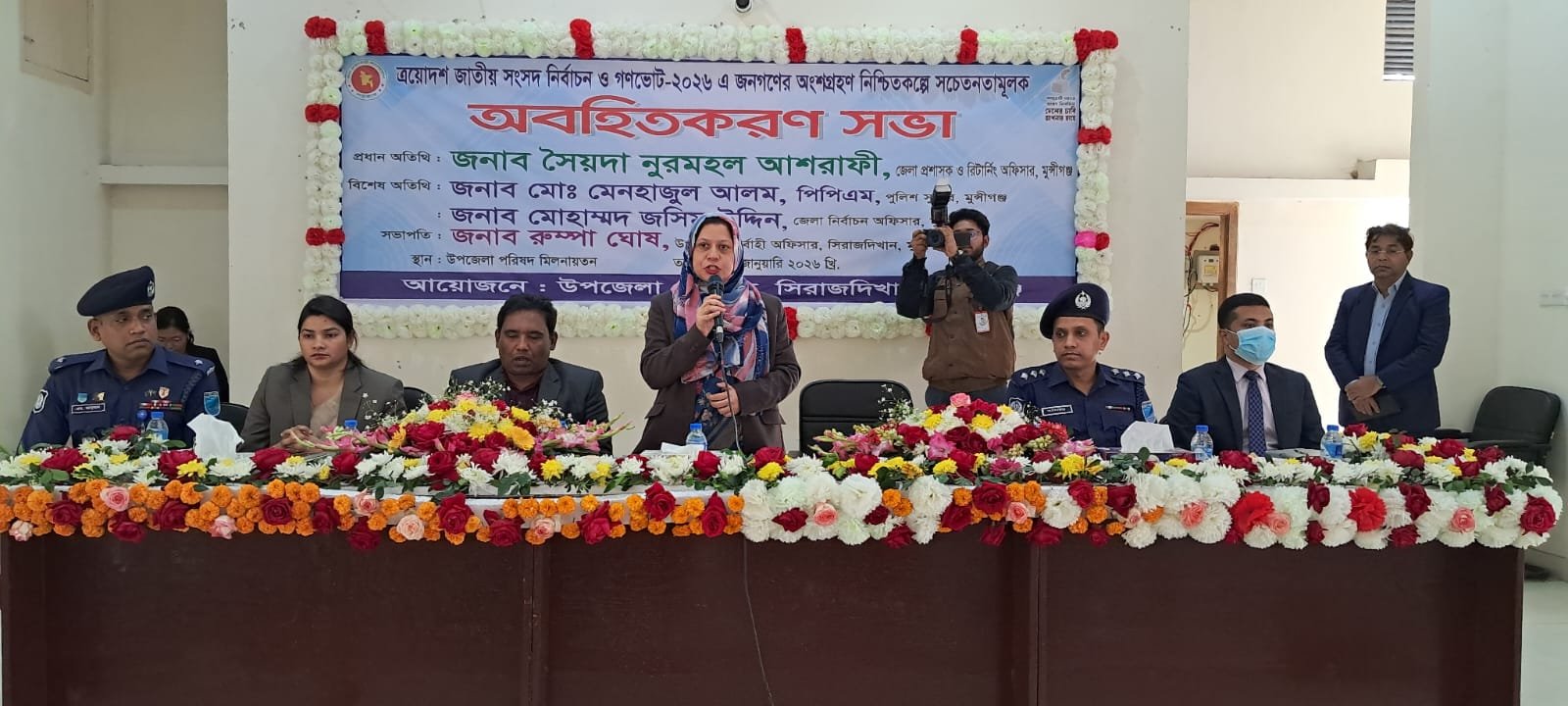 অনুষ্ঠানে প্রধান অতিথি হিসেবে উপস্থিত ছিলেন মুন্সীগঞ্জ জেলা প্রশাসক ও রিটার্নিং অফিসার সৈয়দা নুরমহল আশরাফী। বিশেষ অতিথি হিসেবে উপস্থিত ছিলেন মুন্সীগঞ্জের পুলিশ সুপার মোঃ মেনহাজুল আলম পিপিএম এবং জেলা নির্বাচন অফিসার মোহাম্মদ জসীম উদ্দীন। অবহিতকরণ সভায় সভাপতিত্ব করেন সিরাজদিখান উপজেলা নির্বাহী অফিসার রুম্পা ঘোষ।