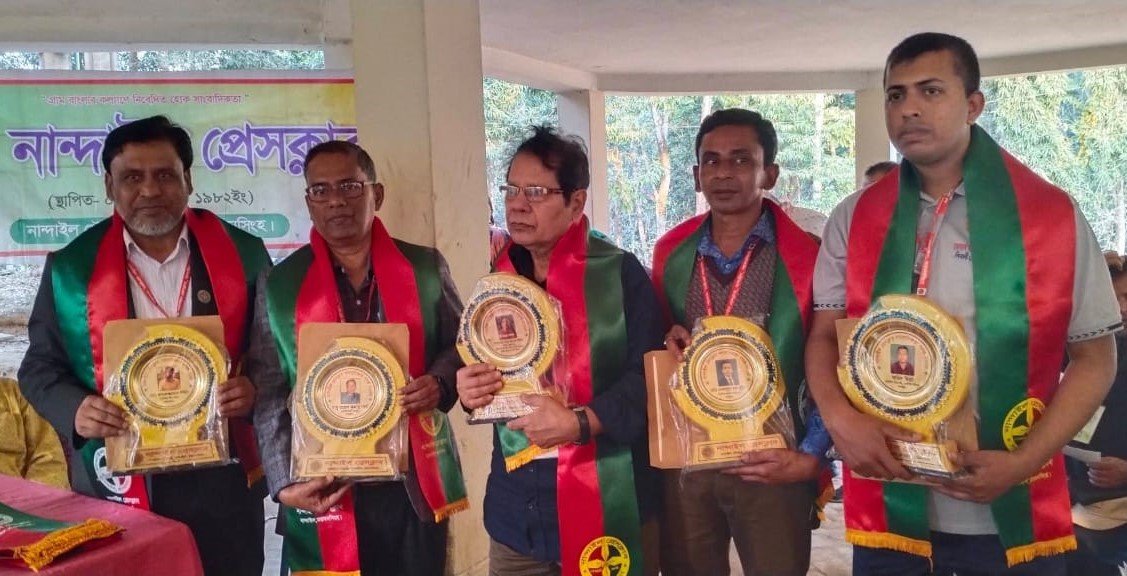 শেরপুরের নালিতাবাড়ী উপজেলার মধুটিলা ইকোপার্ক মহুয়া রিসোর্টে নান্দাইল প্রেসক্লাবের দ্বিবার্ষিক সাধারণ সভা ও ফ্যামিলি ডে উপলক্ষে আয়োজিত এক বর্ণাঢ্য অনুষ্ঠানে এসব সম্মাননা প্রদান করা হয়।