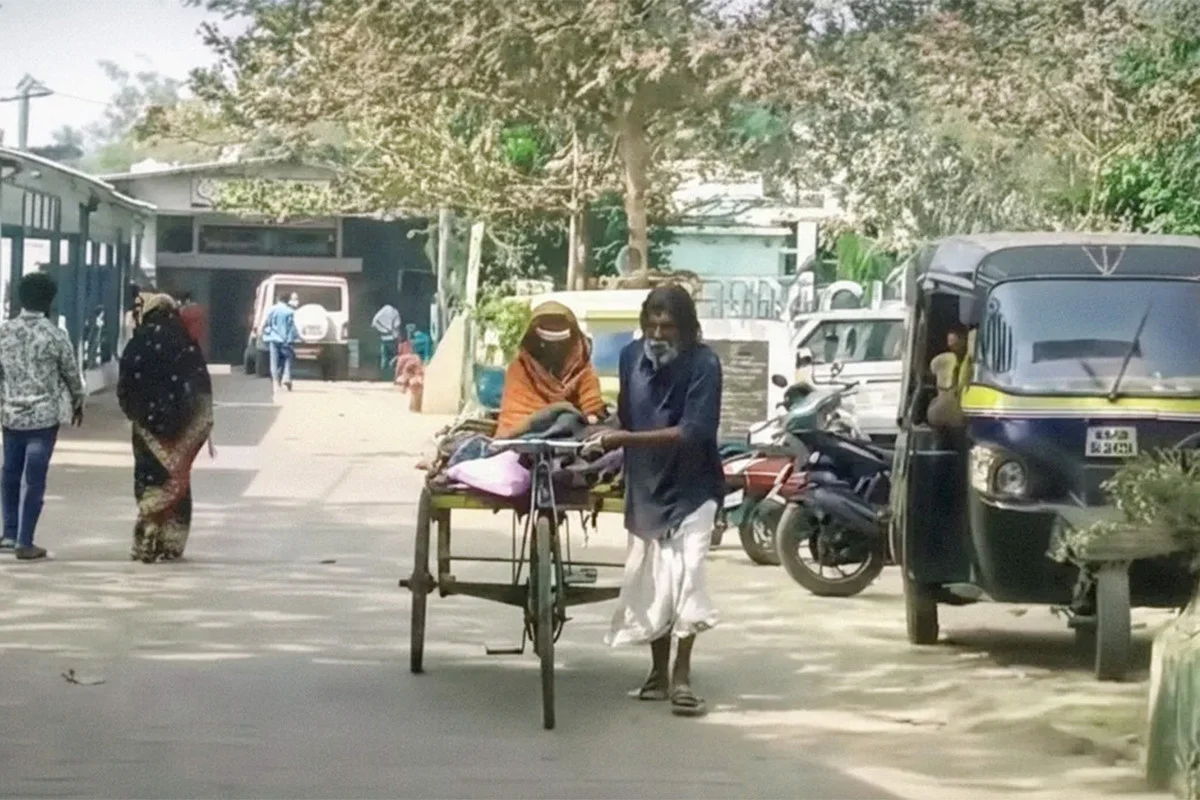 স্ত্রীর চিকিৎসা থামতে না দিয়ে নিজের ভ্যানটিকেই অস্থায়ী অ্যাম্বুল্যান্সে রূপ দেন বাবু। জ্যোতির কষ্ট কমাতে ভ্যানের ওপর পেতে দেন পুরোনো একটি তোষক। সেখান থেকেই শুরু হয় কষ্টসাধ্য যাত্রা।