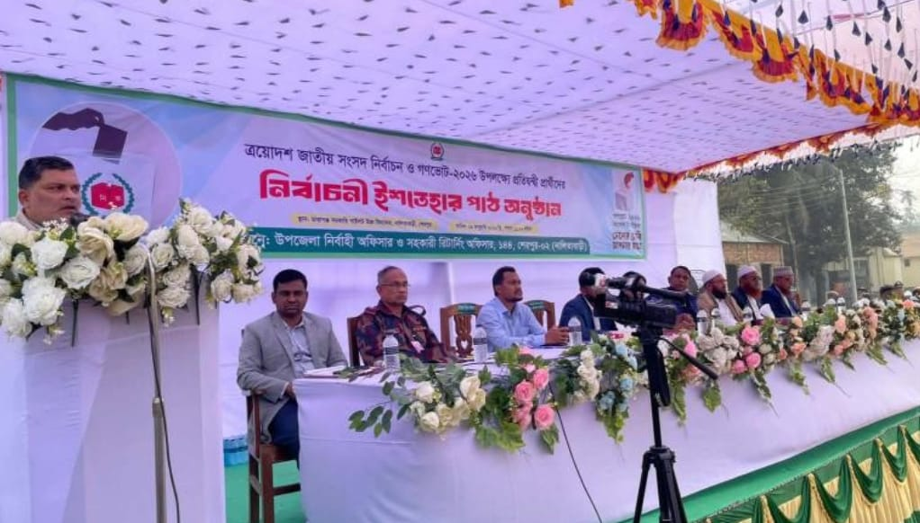 শেরপুর-২ ত্রয়োদশ জাতীয় সংসদ নির্বাচন ও গণভোট ২০২৬ উপলক্ষে প্রতিদ্ব›দ্বী প্রার্থীদের নিয়ে নির্বাচনী ইশতেহার পাঠ করেন ৪ জন প্রার্থী।