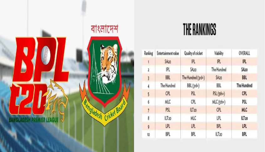সামগ্রিক বিচারে আইপিএল, বিগ ব্যাশ, এসএ টি-টোয়েন্টি, দ্য হানড্রেড তো বটেই, বিপিএলের চেয়ে এগিয়ে রয়েছে লঙ্কান প্রিমিয়ার লিগ (এলপিএল) এবং যুক্তরাষ্ট্রের মেজর লিগ ক্রিকেটও। অনুমিতভাবেই বিশ্বের সবচেয়ে বড় ফ্র্যাঞ্চাইজি ক্রিকেট লিগ ভারতের আইপিএল রয়েছে শীর্ষে, তারপরেই দক্ষিণ আফ্রিকার এসএ টি-টোয়েন্টির অবস্থান। ক্রিকেটের মান এবং গ্রহণযোগ্যতার দিক থেকে আইপিএল এক নম্বরে থাকলেও বিনোদনের দিক থেকে এসএ টি-টোয়েন্টিকে প্রথমে রাখা হয়েছে।