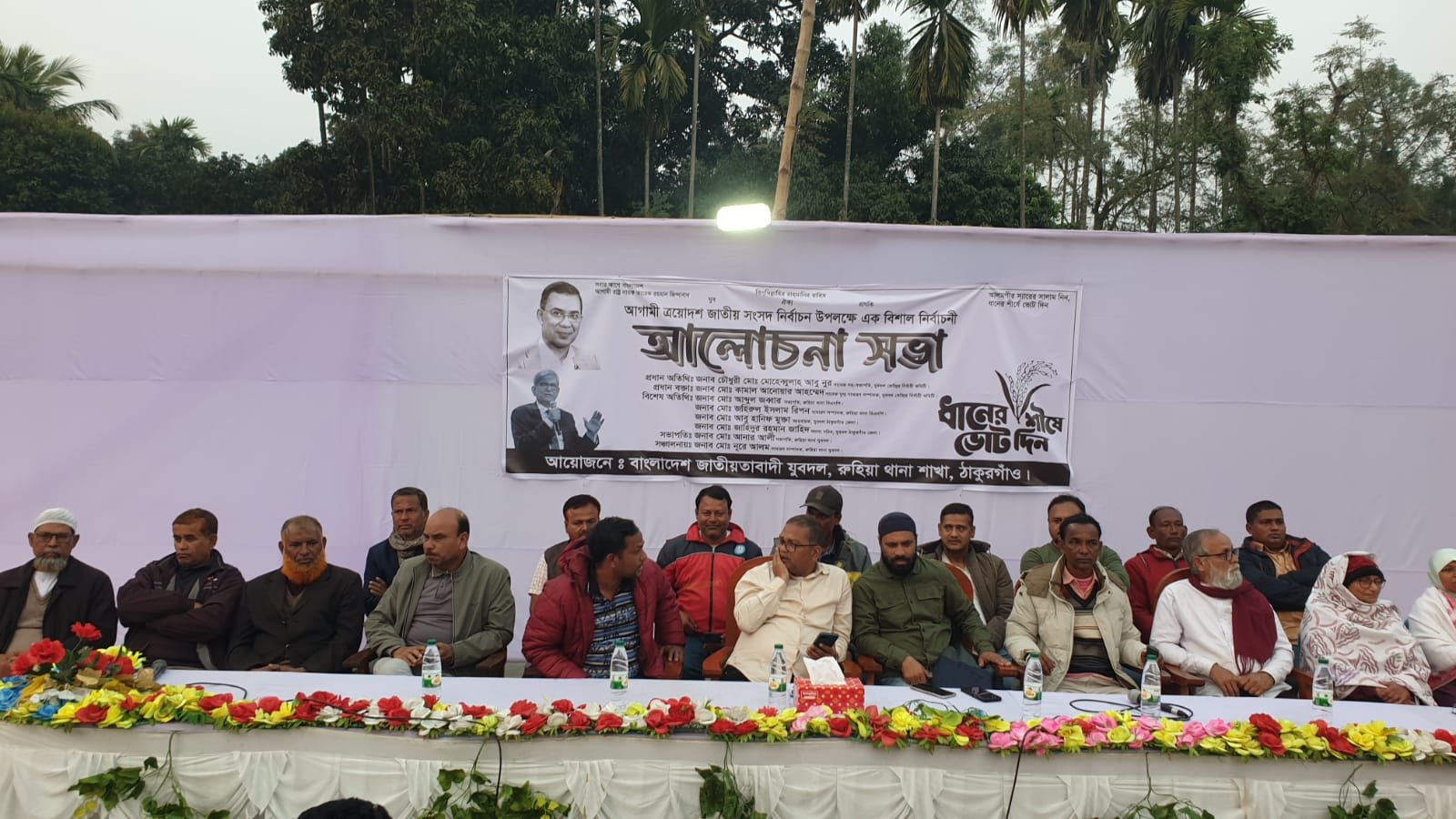 আসন্ন ত্রয়োদশ জাতীয় সংসদ নির্বাচনকে সামনে রেখে ঠাকুরগাঁওয়ের রুহিয়ায় বাংলাদেশ জাতীয়তাবাদী যুবদলের উদ্যোগে এক বিশাল নির্বাচনী আলোচনা সভা অনুষ্ঠিত হয়েছে। রুহিয়া চৌরাস্তা সংলগ্ন চৌধুরী মোঃ মোহেবুল্লাহ আবু নূর -এর মিল মাঠে এই সভার আয়োজন করা হয়।