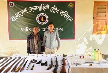 চট্টগ্রামের ফটিকছড়ি উপজেলার ধর্মপুর এলাকায় বাংলাদেশ সেনাবাহিনীর লক্ষীছড়ি জোনের ফটিকছড়ি আর্মি ক্যাম্পের সদস্যরা পৃথক দুটি টার্গেটে বিশেষ অভিযান পরিচালনা করে বিপুল পরিমাণ অস্ত্র ও দেশীয় মদসহ দুই সশস্ত্র সন্ত্রাসীকে আটক করেছে।
