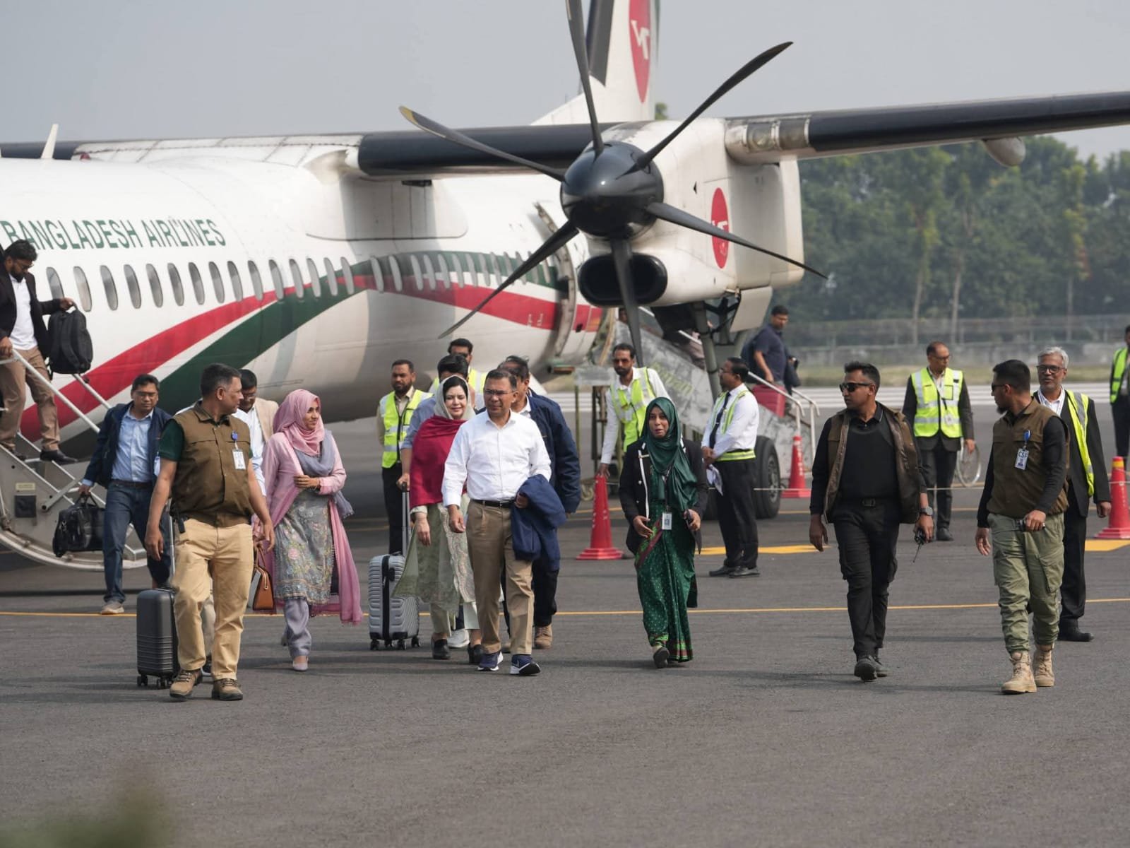 বৃহস্পতিবার দুপুর ১২টা ২০ মিনিটে তাকে বহনকারী বিশেষ বিমানটি হযরত শাহ মখদুম (রহ.) বিমানবন্দরে অবতরণ করলে এক আবেগঘন পরিবেশের সৃষ্টি হয়। ২০০৪ সালে দলীয় সিনিয়র যুগ্ম মহাসচিব হিসেবে এখানে শেষবার জনসভা করেছিলেন তিনি, এবার ফিরলেন দলের শীর্ষ নেতা হিসেবে।