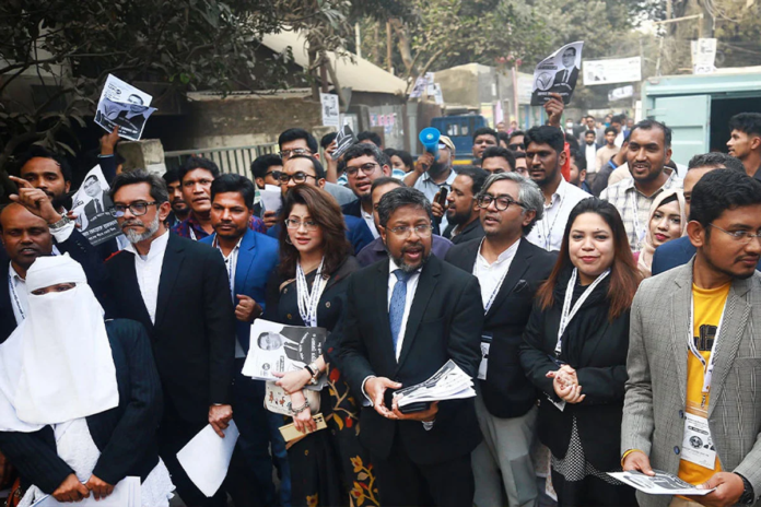 ঢাকা-১৭ আসনের ধানের শীষের প্রার্থী ও বিএনপির চেয়ারম্যান তারেক রহমানের পক্ষে কড়াইল বস্তিতে ভোট চাইলেন আইনজীবীরা। বস্তির মানুষের ঘরে-ঘরে গিয়ে ভোট চান ঢাকা-১৭ আসনের আইন উপকমিটি ও জিয়াউর রহমান ফাউন্ডেশনের আইনি সহায়তা টিমের সদস্যরা।