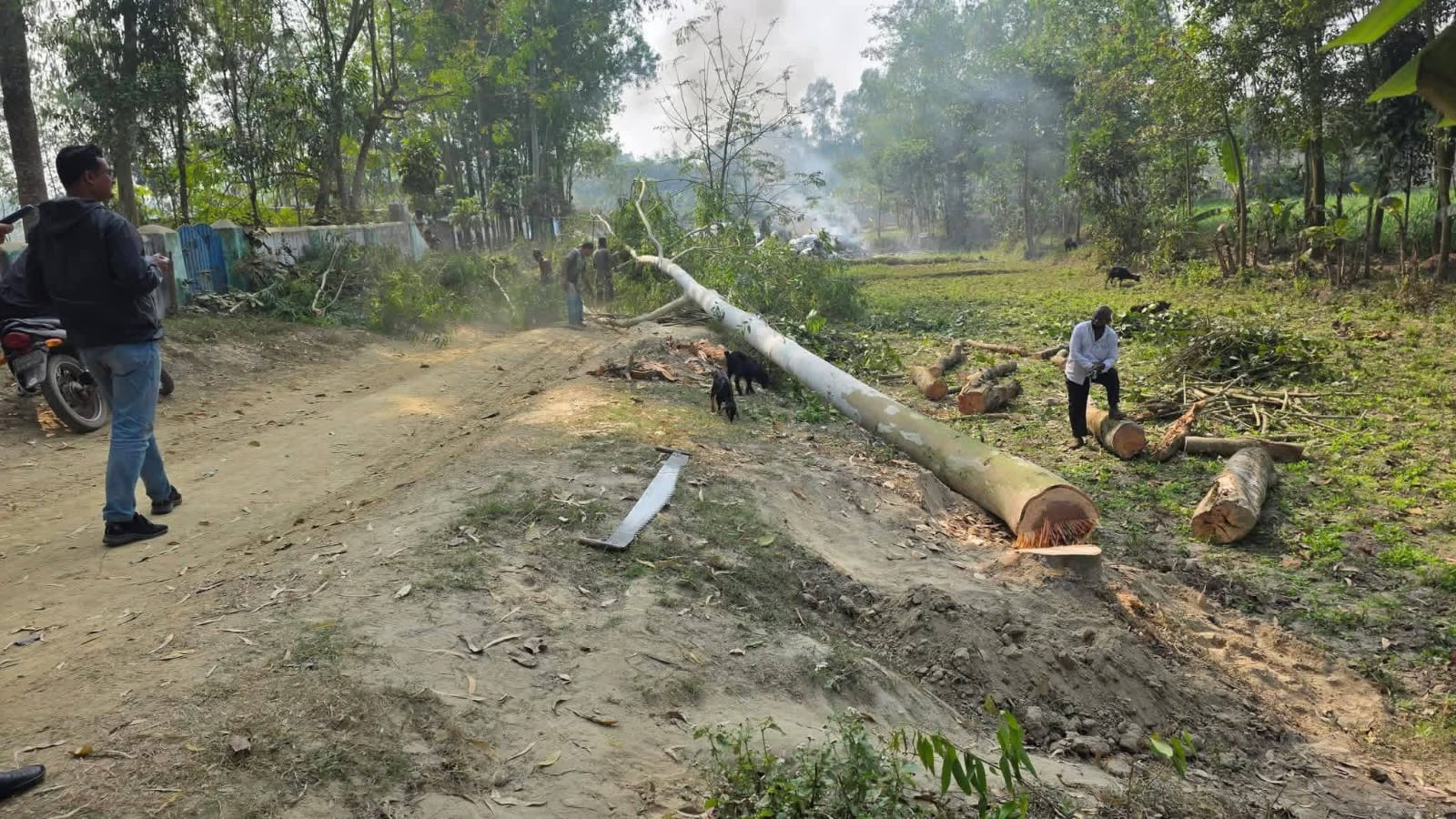 ২৯ জানুয়ারি বৃহস্পতিবার সকালে গাছগুলো কাটার সময় স্থানীয় লোকজন বাধা দিলে কর্তন কাজ বন্ধ হয়ে যায়। পরে বিষয়টি প্রশাসনের নজরে আসে।