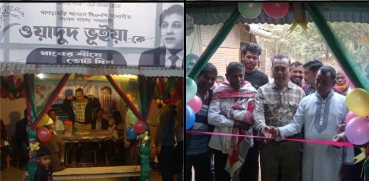 খাগড়াছড়ি পার্বত্য জেলার মহালছড়ি উপজেলার সদর ইউনিয়নের পাঁচ নং ওয়ার্ডের শান্তি নগর এলাকায় নির্বাচনী অফিস উদ্বোধন করা হয়েছে। উদ্বোধনী অনুষ্ঠান ঘিরে এলাকায় নেতাকর্মীদের মধ্যে ব্যাপক উৎসাহ-উদ্দীপনা লক্ষ্য করা যায়।