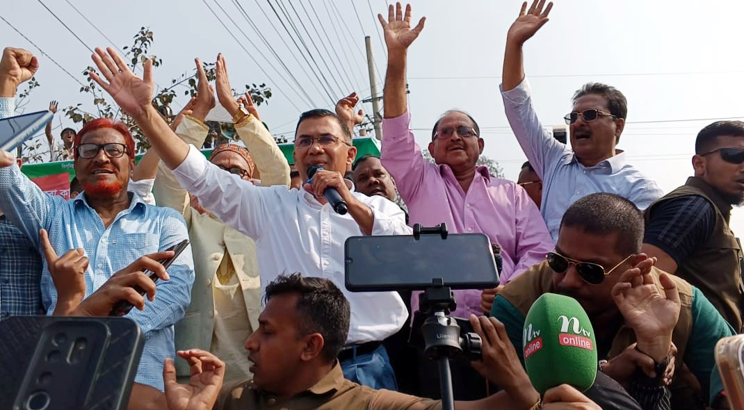বক্তব্যের এই পর্যায়ে তারেক রহমান উপস্থিত জনতার উদ্দেশ্যে বলেন, ‘কি ভাই ঠিক আছে? ধানের শীষকে জয়যুক্ত করবেন তো?’ এ সময় জনতা হাত তুলে সমস্বরে বলেন, ‘হ্যাঁ’ ।