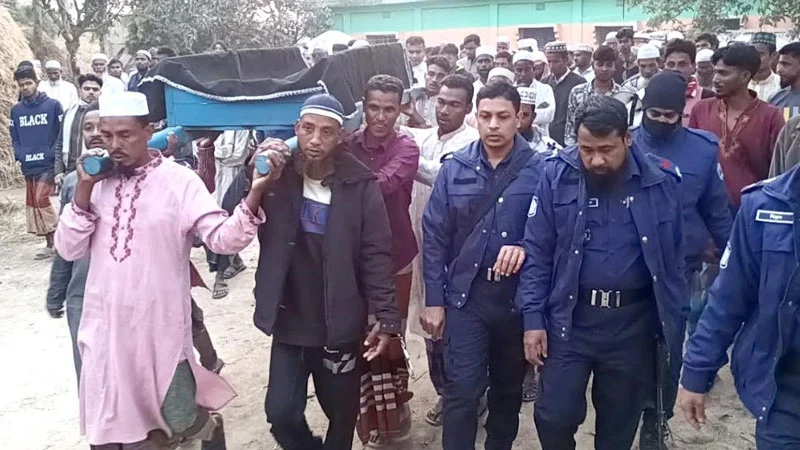 জয়পুরহাটের আক্কেলপুরে তিন ঘণ্টার জন্য প্যারোলে মুক্তি পেয়ে মায়ের জানাজায় অংশ নিয়েছেন ইউনিয়ন যুবলীগ কর্মী মিন্নত আলী (৩৬)। আজ শনিবার বিকেলে উপজেলার গোপীনাথপুর ইউনিয়নের আবাদপুর গ্রামে তাঁর মায়ের জানাজা অনুষ্ঠিত হয়। জানাজা শেষে বাঁ হাতে হাতকড়া পরা অবস্থায় ডান হাতে মায়ের খাটিয়া নিয়ে কবরে যেতে দেখা যায় তাঁকে।