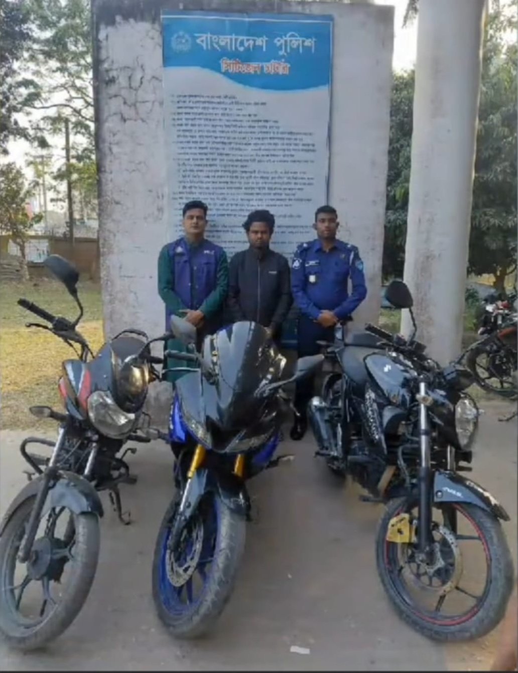 আটক ব্যক্তির স্বীকারোক্তির ভিত্তিতে তার বসতঘর থেকে ৩টি চোরাই মোটরসাইকেল উদ্ধার করা হয়। উদ্ধারকৃত মোটরসাইকেলগুলো হলো SUZUKI 150CC কালো রঙের, YAMAHA R-15 160CC নীল রঙের এবং Discover 110CC লাল-কালো রঙের।
