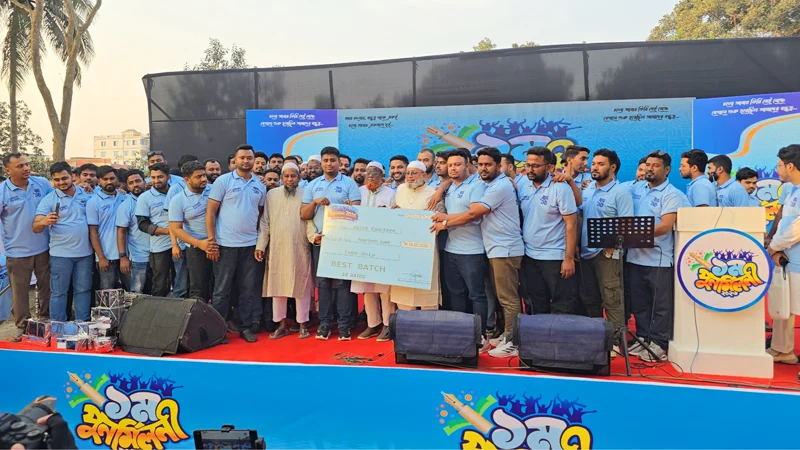 শনিবার (৩১ জানুয়ারি) বিকেলে দেবীদ্বার সরকারি রেয়াজ উদ্দিন পাইলট মডেল উচ্চ বিদ্যালয় মাঠে আয়োজিত ‘২০১৪ ব্যাচ’-এর এক পুনর্মিলনী অনুষ্ঠানে এই অর্থ হাসনাতের হাতে তুলে দেওয়া হয়।