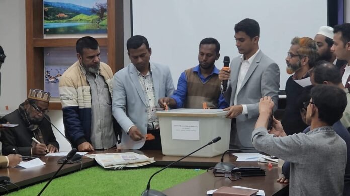 ত্রয়োদশ জাতীয় সংসদ নির্বাচন ও গণভোট–২০২৬ উপলক্ষে সুনামগঞ্জে পোস্টাল ব্যালট বাক্স বন্ধ (লক) কার্যক্রম অনুষ্ঠিত হয়েছে।