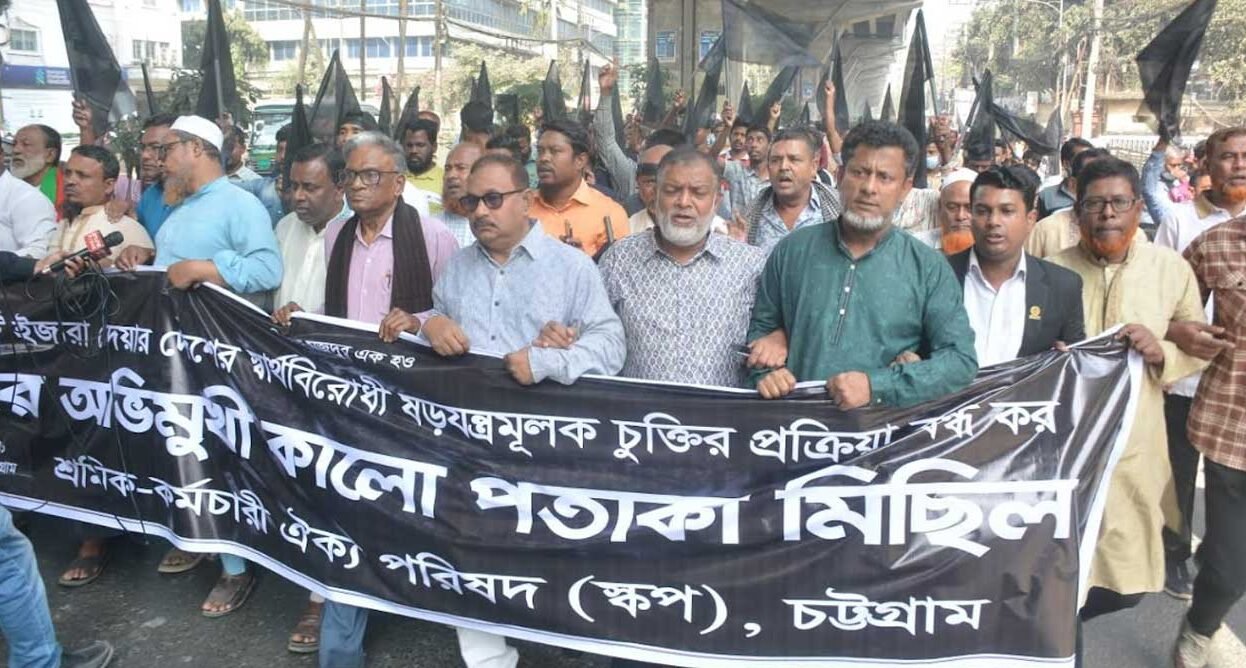 চট্টগ্রাম বন্দরের নিউমুড়িং কনটেইনার টার্মিনাল (এনসিটি) ইজারা দেওয়ার প্রতিবাদে কালো পতাকা মিছিল ও সমাবেশ করেছে শ্রমিক-কর্মচারী ঐক্য পরিষদ। একই সঙ্গে আগামী মঙ্গলবার (৩ ফেব্রুয়ারি) চট্টগ্রাম বন্দর অবরোধ কর্মসূচির ঘোষণা দেওয়া হয়েছে।