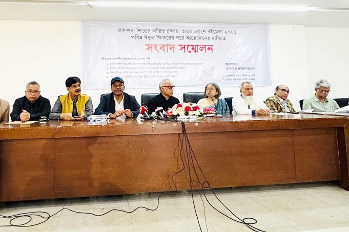 সোমবার জাতীয় প্রেসক্লাবে অনুষ্ঠিত সংবাদ সম্মেলনে এ দাবি জানান সর্বস্তরের প্রকাশকরা। সংবাদ সম্মেলনে লিখিত বক্তব্য পাঠ করেন প্রকাশনা সংস্থা ইউনিভার্সিটি প্রেস লিমিটেডের (ইউপিএল) প্রকাশক ও ‘অমর একুশে বইমেলা কমিটি ২০২৬’-এর সদস্য মাহরুখ মহিউদ্দিন।